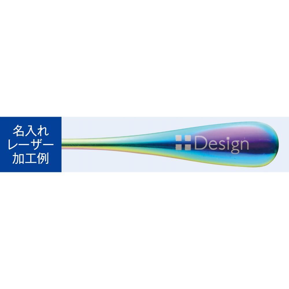 角度によってさまざまな色に見えるステンレス製のデザートスプーンの2本セット。