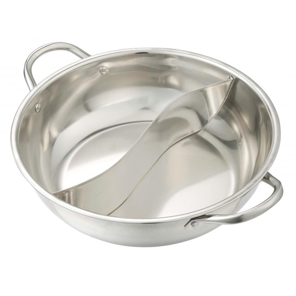 家族の好みが異なっても大丈夫な2食鍋です!2種類の鍋を同時に楽しめる仕切り付きの鍋は、ピリッと辛いキムチ鍋や、やさしい豆乳鍋なども味を同時に楽しむことができます。直径27cmで4~6人分対応でき、ホームパーティーで活躍します。ご成約・抽選イベントの特賞に最適です。