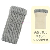 肌に直接ふれる内側にシルク混の糸を使用した、吸湿性が高くやさしい肌ざわりのウォーマーです。