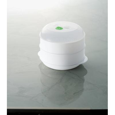 ボリューム満点のレンジ専用蒸し器です。温めた後、受け皿に載せたまま食卓にサーブできます。