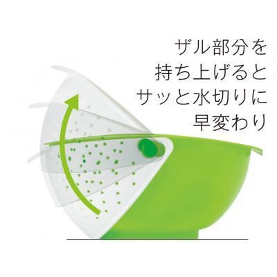 ボウル部分を持ち上げると、可動式のザルでそのまま水切りOK!お渡し用に、ちょっと差がつくオリジナルのデザイン袋が付属しています。