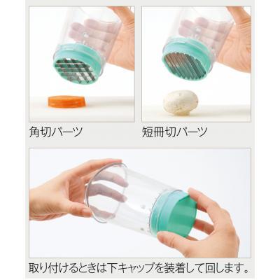 食材の上から押すだけ!簡単に食材を切ることができるスライサーです。セットする刃によって、スライスするかダイスにカットするかを選べる優れもの。