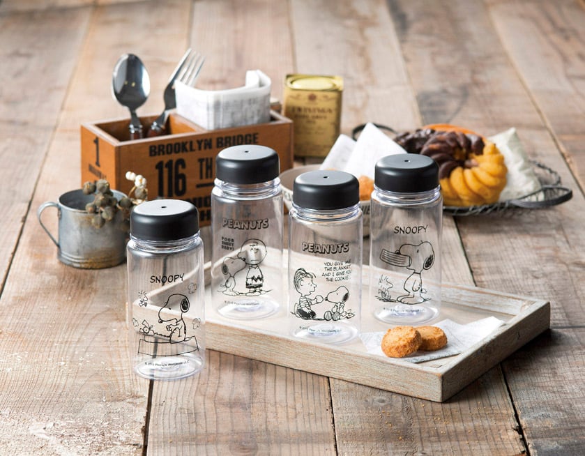 シンプルなクリアボトルにスヌーピーが映える!飲みきりサイズ!