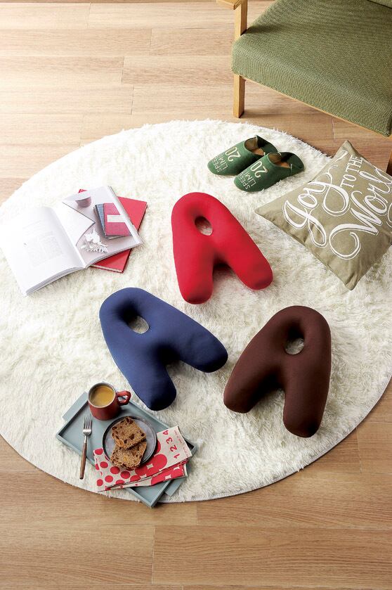 フィット感を追求したA型形状。腰クッション・うたた寝・うつ伏せ・壁などの寄りかかりに使い分け。