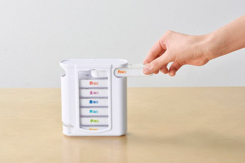 お薬やサプリメントを一週間分まとめて管理、しっかり管理してお薬の飲み忘れを防止します。